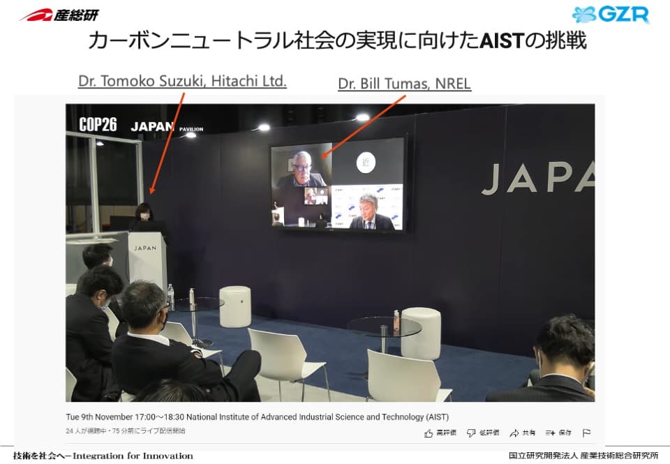 AISTは、カーボンニュートラル社会の実現に向けて、ゼロエミッション国際共同研究センター(GZR)を中心に世界最先端の技術開発の実装を目指した研究開発に取り組んでいる。セミナーでは、GZR及び関連研究開発を実施しているFREAの紹介を行うとともに、AISTが主催し、G20各国の主要な研究機関の参加を得て、国際連携の強化及びイノベーションを促進することを目指しているRD20国際会議を紹介する。