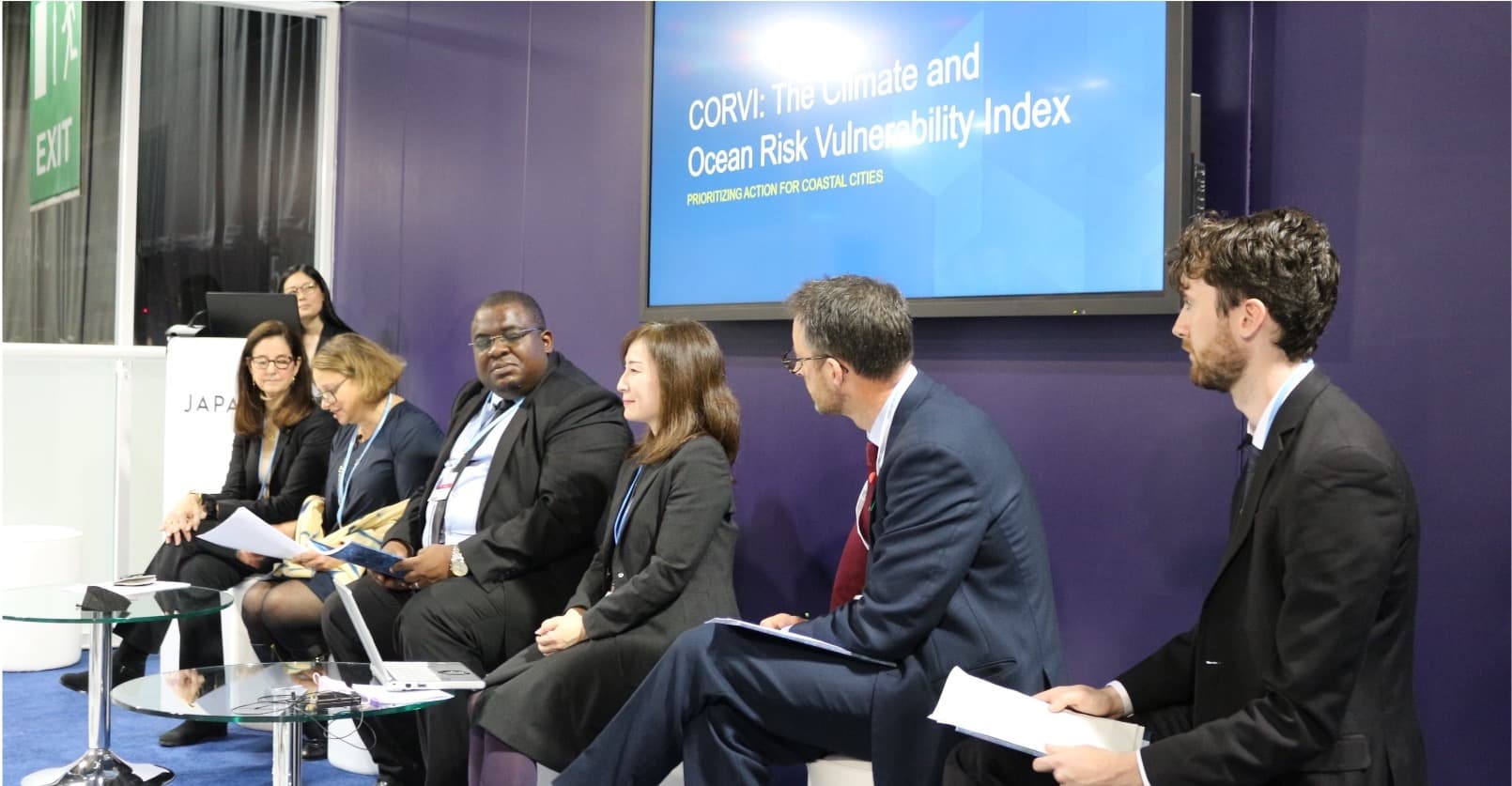 COP26ジャパンパビリオン・イベント「Stemming the Tide: Innovative Tools and Actions to Aid Coastal City Adaption and Improve Resilience」では、アジア太平洋、カリブ海、東アフリカなどの沿岸大都市を対象としたCORVIを用いた分析結果を踏まえて、気候変動の影響やレジリエンス強化に向けて必要となる対策について議論を深めました。