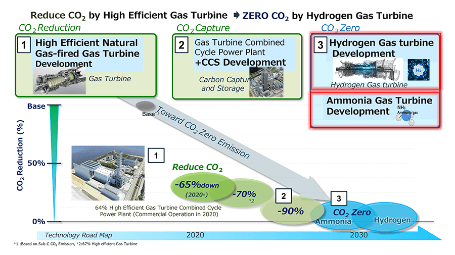 The development of 30% hydrogen co-firing has already been completed, 50% co-firing has been successfully tested, and 100% firing will be verified by 2025. Based on these validation results, we will promote the social implementation of hydrogen power generation worldwide.