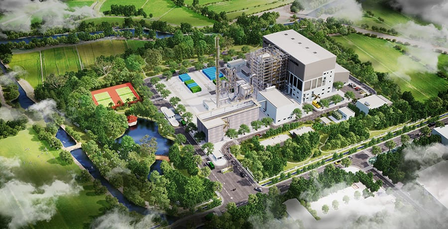 バクニン省廃棄物発電プロジェクト完成予想図 ベトナム国バクニン省廃棄物発電プロジェクト起工式 途上国を含む多くの国において、衛生的で適切な廃棄物処理は喫緊の課題であり、早期の解決が期待される一方、それが実現できている国、地域はまだほとんどない。廃棄物発電は、廃棄物を衛生的に処理するだけでなく、処理時の廃熱を利用し発電を行うことができ、化石燃料による発電からの脱却の一助となるとともに、国連気候変動枠組条約の究極的な目標である、大気中の温室効果ガスの濃度の安定化にも貢献し得る技術である。