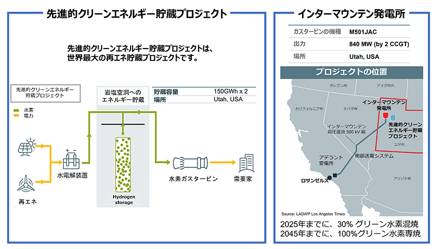 例えば、米国ユタ州では、岩塩空洞にグリーン水素を貯蔵して、その水素を電力需給に応じて水素ガスタービンに供給する先進的クリーンエネルギー貯蔵PJに参画しています。このようなPJを通じて、水素の製造から貯蔵、供給、利用まで一貫した水素エコシステムの構築を進めていきます。