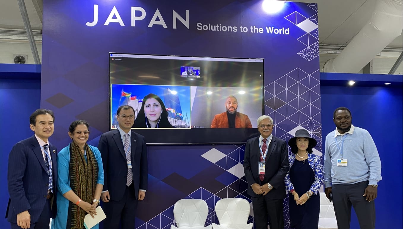 2022年11月10日、国連大学サステイナビリティ高等研究所(UNU-IAS)は、エジプトのシャルム・エル・シェイクで開催された第27回気候変動枠組条約締約国会議(COP27)の一環として、ジャパン・パビリオンにおいてサイドイベントを開催しました。本イベントでは、気候変動に関するパリ協定と持続可能な開発のための2030アジェンダとの間のシナジー(相乗効果)を強化するための行動について議論が交わされました。冒頭の開会挨拶では、環境省の小野洋 地球環境審議官が、今年7月に国連大学で開催された「第3回パリ協定とSDGsのシナジー強化に関する国際会議」について言及し、成果を次のステップにつなげることが重要であると話しました。また、ユースのエンパワーメントの必要性を強調した上で、UNU-IASの大学院学位プログラムにおけるパリ協定専攻創設の取り組みに関する謝辞が述べられました。UNU-IASの山口しのぶ所長は、2023年秋より開講するパリ協定専攻について概説し、これは国連機関による初めての試みであると紹介しました。また、UNU-IASが教育・能力構築プログラムを通じてステークホルダーを支援することにより、SDGsおよびパリ協定目標の達成に向けて取り組んでいることを強調しました。UNU-IASの竹本明生プログラム・ヘッドは、基調講演を行うとともに、パネル・セッションで司会を務めました。セッションでは、国連機関、自治体、ユース、研究機関の代表者らによって、シナジーをもたらす行動とユースのエンパワーメントに関する経験や教訓が共有されました。国連経済社会局(UNDESA)持続可能な開発目標部門のバハレ・セイディ持続可能な開発シニア担当官は、「第3回パリ協定とSDGsのシナジー強化に関する国際会議」の主要な課題と提言まとめを共有し、COP27など政府間交渉の場での話し合いを通じて気候行動とSDGsアジェンダを推進することの重要性を強調しました。国連アジア太平洋経済社会委員会(ESCAP)の環境開発部サングミン・ナム ディレクターは、アジア太平洋地域がカーボンニュートラルを目指しつつも、今後も排出量の増加が見込まれていることを強調し、気候変動対策と自然を基盤とした解決策(NbS)との間にシナジーをもたらす行動について論じました。そして、そのためには、技術的な実現性やNbSへの投資が鍵となると述べました。さらに、NbS推進には労働力が求められるとして、高齢化による人口動態の変化が考慮されなければならないことを指摘しました。インド・エネルギー・資源研究所のラジャニ・ランジャン・ラシュミ上席フェローは、エネルギーの需要が高まっていることを受け、インドが目標として掲げる2030年までのCO2排出量45%削減の達成に向けては、分散型の太陽光発電の導入が重要であると述べました。また、持続可能な生産と消費の実践を通じて、カーボンフットプリントを減らす必要があると強調しました。UNU-IASのスニータ・サブラマニアン研究員は、相互関連的な課題に対処するためには、公正で統合的なアプローチが必要不可欠である、とした上で、気候変動分野と生物多様性分野が協働してトレードオフ(両立不可能性)を最小化しシナジーを最大化した例として、「ワンヘルス」アプローチについて解説しました。デンマーク、オーフス市の持続可能なシステムデザインと研究– 子どもと若者を担当するクレイグ・アレク・ナイティブ氏は、ユースの積極的な活動を市民の日常生活や普及啓発に組み込むための若者への支援提供ツールの例として、オーフス市ユース議会の取り組みを紹介しました。国連生態系回復の10年タスクフォースのユース代表であるアヤディ・ミシュラ氏は、ユースの参画を意義深いものにする必要性を強調した上で、インドにおける参加型のアプローチについて紹介し、ユース、先住民族、政治家など様々なステークホルダーを巻き込んでゆくためには、ボトムアップとトップダウンと両方のアプローチが必要だと述べました。アース・アドボカシーのユシフ・ツニジ・ケラニ エグゼクティブ・デイレクターは、アフリカ諸国において気候変動の緩和と適応戦略の実施のための農業分野のイニシアチブを通じてユースの参画が進んでいることを指摘しました。その後、公正な移行に向けた雇用の創出、世代間のエンパワーメントを含む教育、グローバルで包括的な資源、学校システムと持続可能な開発プログラムの統合、社会全体でのアプローチ、などのテーマについて議論が行われました。