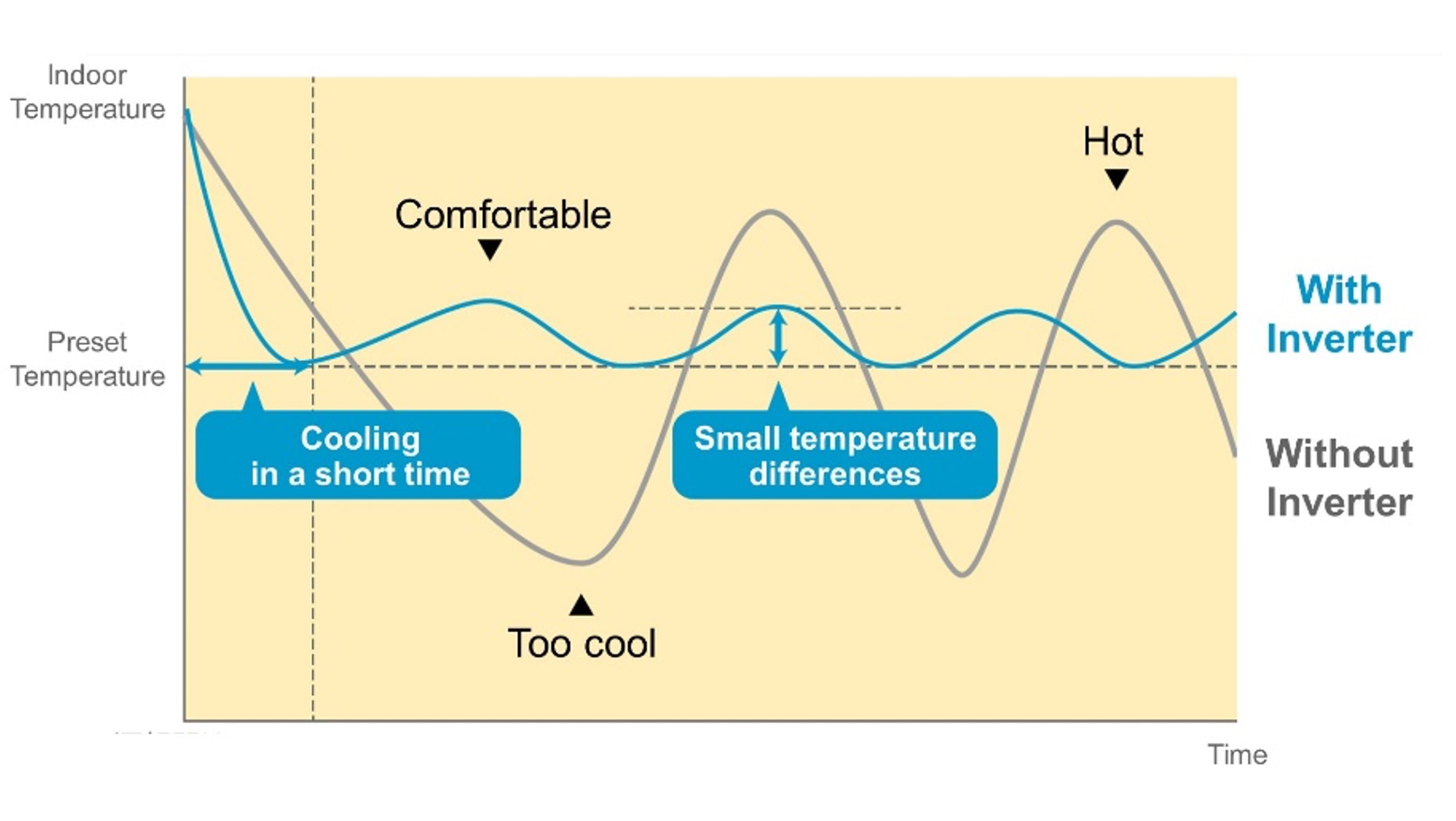 Inverter technology offers significant energy savings for air conditioners, which use 10% of the world's electricity.