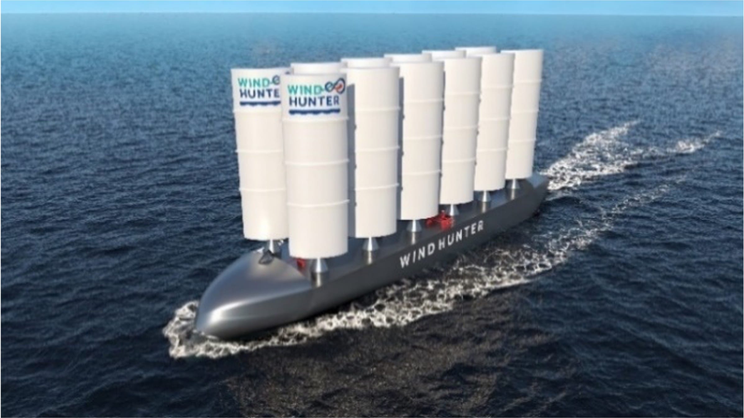 ウインドチャレンジャーは、伸縮性のある硬翼帆を用いて風力エネルギーを船舶の推進力に直接変換します。既存の省エネテクノロジーと干渉することなく、様々な船舶に適用できるソリューションです。複数枚の帆を使用することで、さらなる温室効果ガス削減を実現。全く新しい発想で帆船を復活させ、温室効果ガスの大幅削減を目指します。"ウインドハンター"