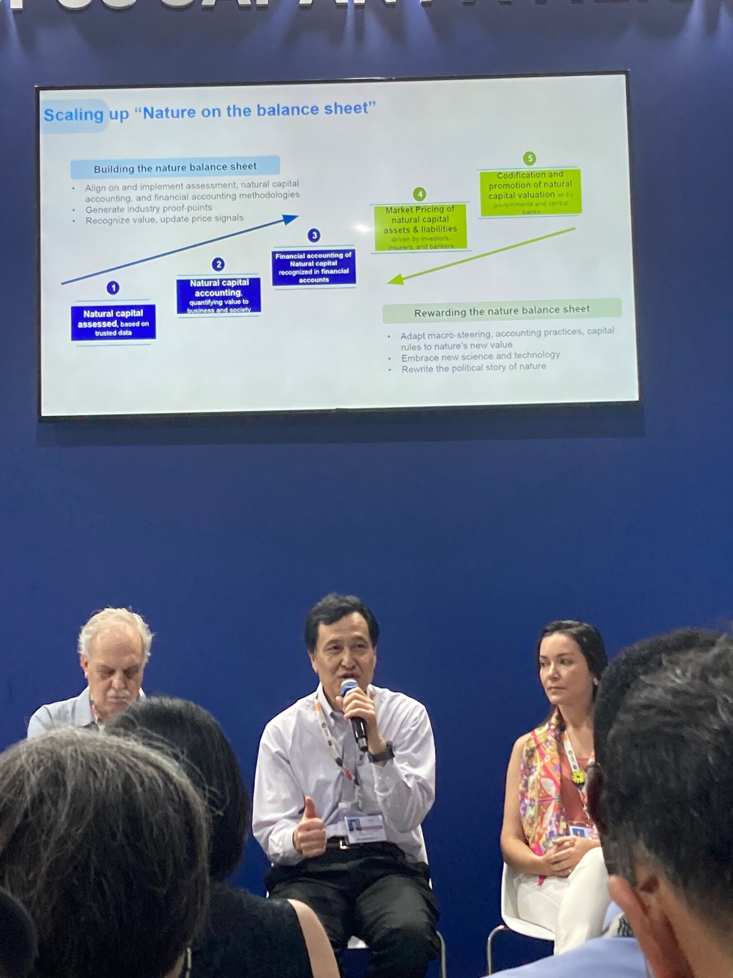 自然資本を経済システムに統合し、ネイチャーポジティブ社会への移行を加速するためには、生態系の維持・再生を「企業価値と経済成長に結びつく投資」として捉える枠組づくりが不可欠である。本セミナーでは、自然資本をバランスシートへ反映するための国際ルール形成に向け、各参加者が果たすべき役割と課題、そして実務的なロードマップが議論された。日本企業・ブラジルの科学者・NGO・シンクタンクといった多様な登壇者から、森林資産オーナーとしての実務経験、アマゾン生態系の臨界点に関する最新科学知見などが共有されたほか、社会・経済システムと自然資本評価を結びつけるアプローチ等、制度実装に向けた論点が具体的に議論された。本セミナーを通じて、自然資本を財務に統合する国際的なルールメイキングの加速に向け、アジアやグローバルサウスから知見発信を強化する必要性が広く共有され、今後の政策形成・国際連携に向けた重要なステップとなった。