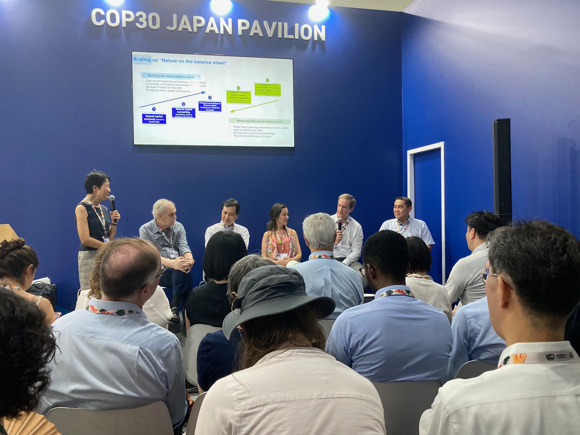 To integrate natural capital into the economic system and accelerate the transition to a nature-positive society, it is essential to create a framework where preservation and regeneration of ecosystems are regarded as "investments” that increase corporate value and lead to economic growth. This seminar discussed the roles and challenges for each participant in formulating international rules to put nature on balance sheets and its roadmap. Speakers included CEOs from Japanese companies, scientist from Brazil, NGO, and a think tank who shared practical experience as forest asset owners, latest scientific findings on the Amazon ecosystem, and approaches to linking social and economic systems with natural capital valuation. These speakers shared a veiw that voices from Asia and the Global South should be amplified in the acceleration of international rule-making to integrate natural capital into economic and financial system. The seminar served as an important step for future policy formulation and international cooperation in natural capital valuation.