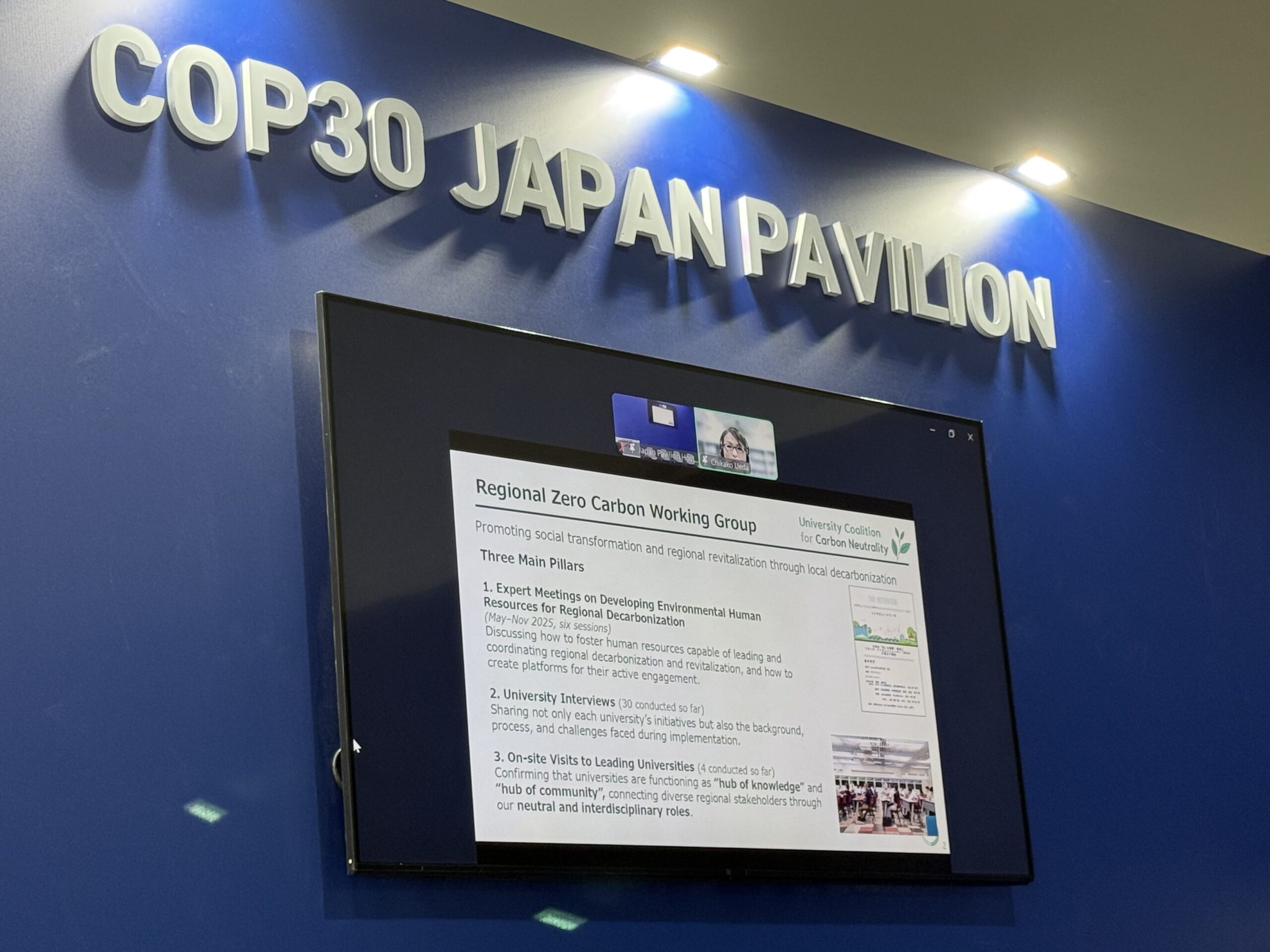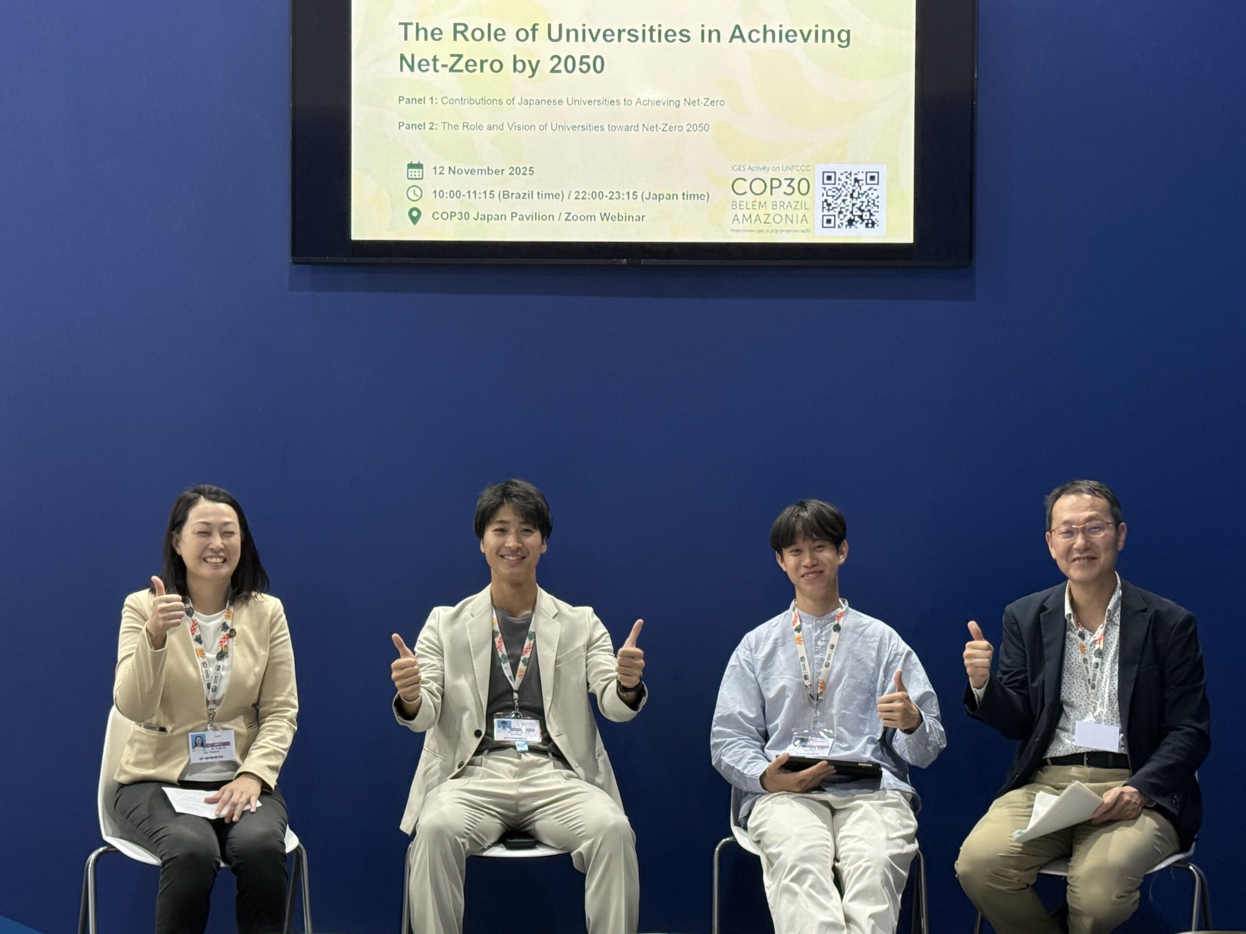 Panel 2 brought together universities and research institutes from Japan and abroad, along with youth representatives from Japan and Malaysia. The discussion reaffirmed the key roles universities play in education, research, and implementation, and emphasized the need for stronger collaboration across countries, sectors, and generations. Youth speakers expressed their desire to be more actively involved in net-zero initiatives, noting that opportunities to present in international fora such as the COP are a strong source of motivation.