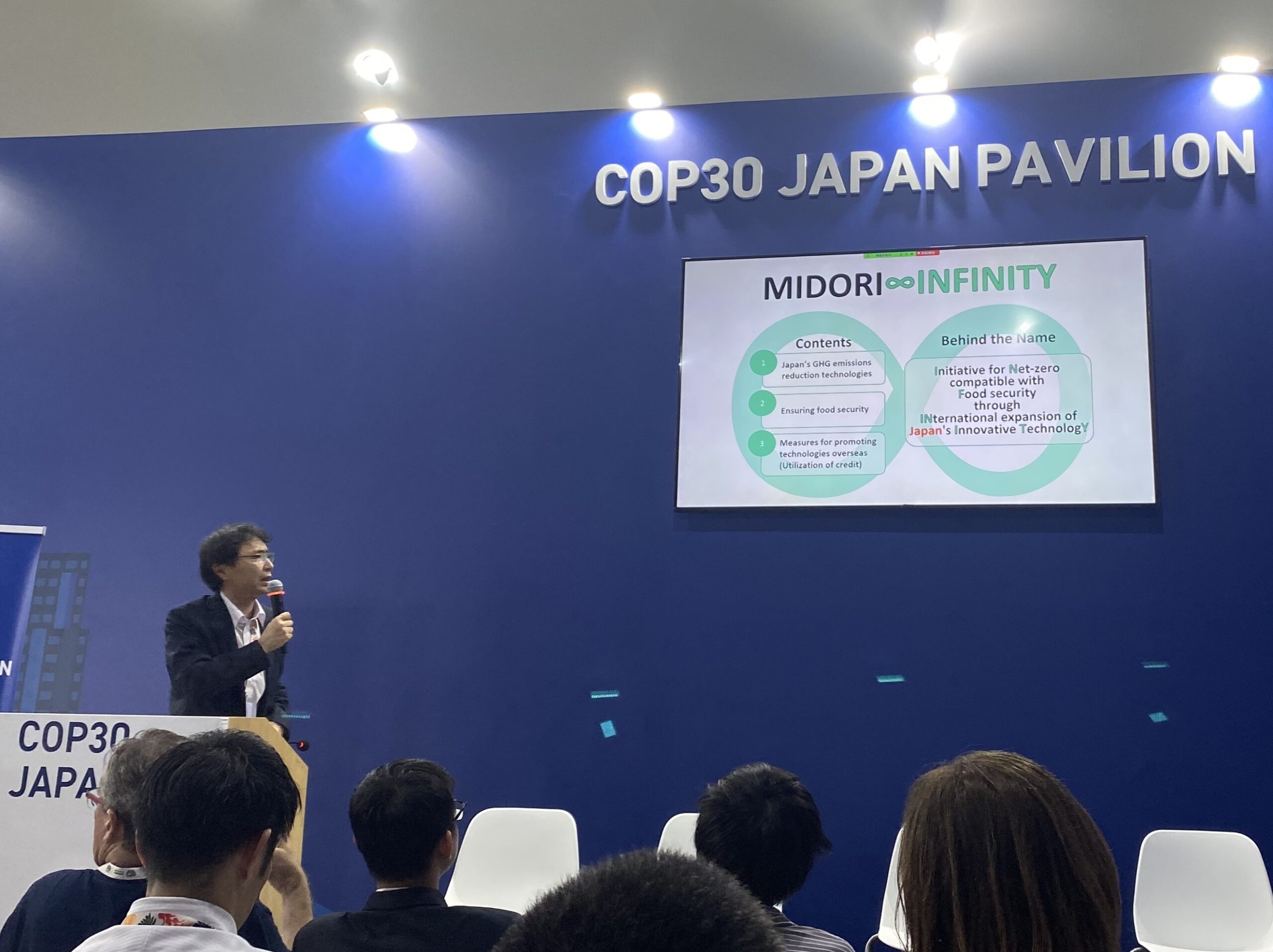 The AFOLU (Agriculture, Forestry, and Other Land Use) sector is one of the world’s major sources of GHGs emissions, yet measures have not been taken sufficiently. On the other hand, interest in overseas deployment of GHG emission reduction technologies is growing amongJapanese private companies and startups, and some already leverage investment and financing from domestic and international financial institutions to expand abroad. In response, MAFF formulated “Initiative for Net-zero compatible with Food security through INternational expansion of Innovative TechnologY (in short, MIDORI∞INFINITY)” to mobilize public–private climate finance into the AFOLU sector. To implement this initiative, MAFF established “MIDORI Decarbonization Overseas Deployment Consortium.” This consortium seeks to attract decarbonization investment into the agri-food sector and expand markets for Japanese agri-food companies in climate-related businesses. This seminar aims to mobilizing climate finance into the AFOLU sector by showcasing collaboration between financial institutions, government agencies and the private sector, and offering forum to discuss challenges and prospects in generating projects.