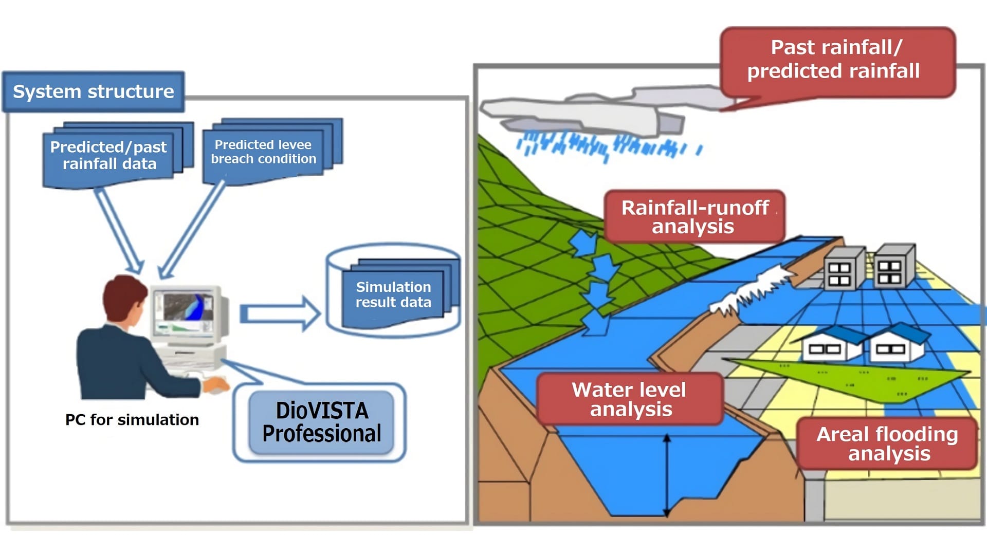 GETFLOWS can be used to estimate recharge volume by analyzing changes in precipitation and evaporation rates due to heavy rains and droughts. Data from radar rain gauges is read in real-time, runoff is calculated using a physical model, and water level rise is predicted. GETFLOWS is characterized by full coupled analysis that enables surface water and groundwater interaction analysis, which was previously difficult, and is one of Japan's cutting-edge technologies. A model of the real world is created in a computer, and surface water and groundwater are calculated simultaneously to calculate river flow, groundwater reserves, water budget, etc.