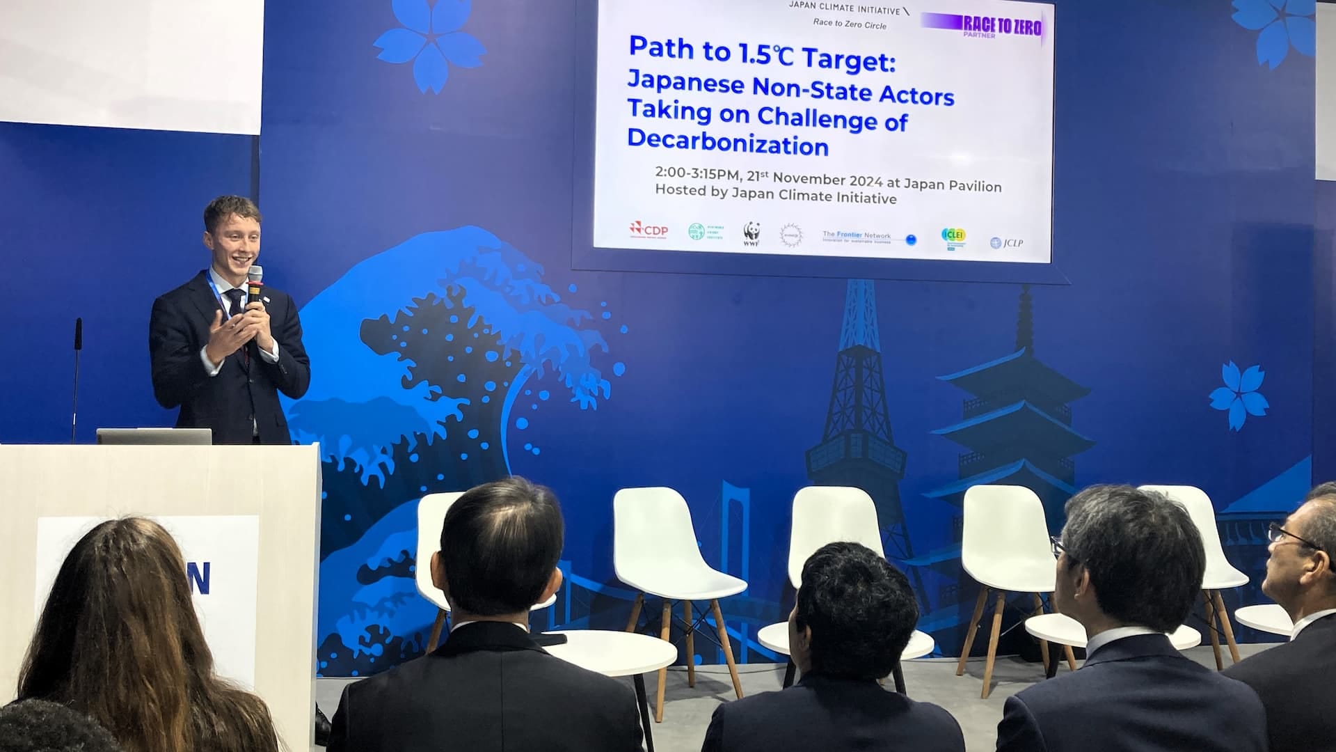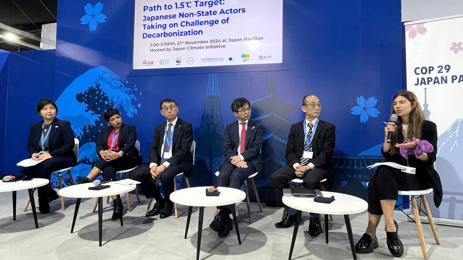 冒頭、加藤JCI共同代表は、1.5℃目標達成に向け、JCIはひるむことなく気候行動を加速していくこと、政府とも一致団結して野心のループを強化していくことの決意を述べた。