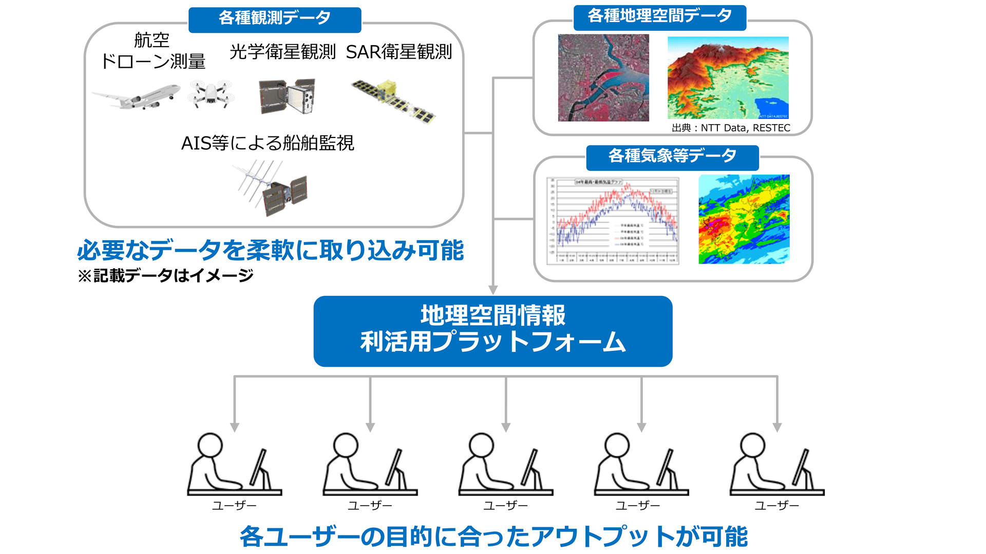 自然現象、気候変動、人間活動等によって引き起こされる自然の改変及びそのリスクを多様な衛星や地上センサを組み合わせることで、広範囲に探知・検出し、分析するための手法を開発し、それらのデータを活用するための地理空間情報プラットフォームを開発している。このプラットホームでは、多様なデータを自動的に収集、処理、解析し、シンプルな操作で必要な情報を可視化できる。高度なWeb技術やAI技術を応用することで、専門家以外でもこれらのデータを容易に利用可能になることを目指しており、ビジネスにおける自然資本に対するリスクや機会の適切な評価・開示や自然資本の保全活動に、効果的に活用されることを目指している。