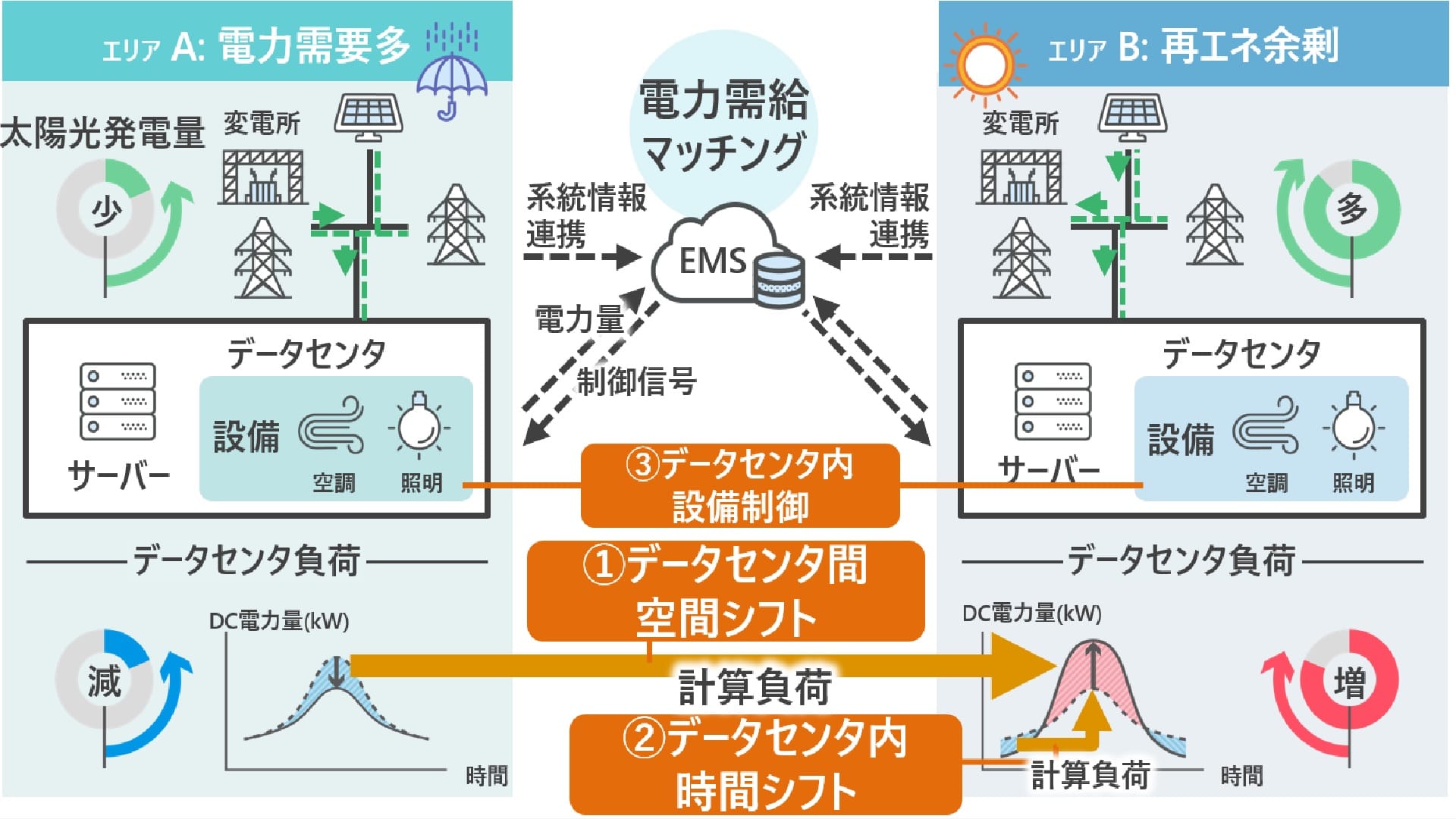 - 異なる地域のデータセンター間の計算負荷を調整・制御する技術