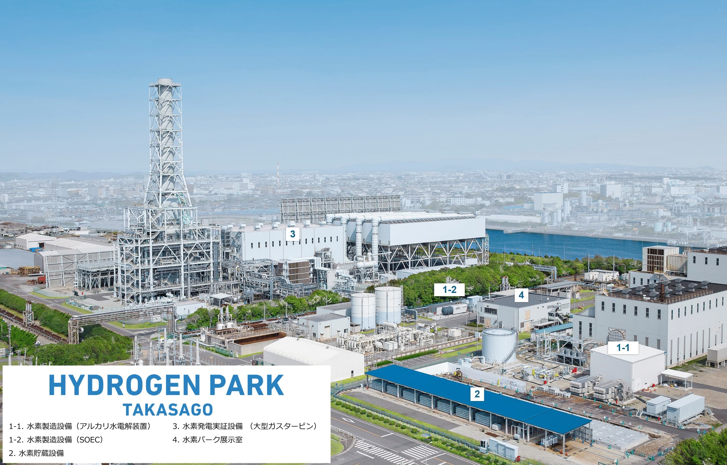高砂水素パーク:水素製造・貯蔵・利用までの技術実証と大規模な商業運転を可能とする世界最大級の実証発電設備 三菱重工グループの先進的CCUSバリューチェーン - (1)革新的水素製造・発電技術:弊社は、既存インフラの脱炭素化への取り組みとして天然ガス焚き発電所の水素転換を進めるために、水素燃焼用燃焼器の開発、及びその実プラントでの技術実証を進めて、2030年に大型ガスタービンで水素専焼できる目処が立ちつつある。このような水素発電を社会実装するには、水素需要側と合わせて水素供給側の準備が必要不可欠なことから、弊社は水素製造技術の開発にも注力している 。