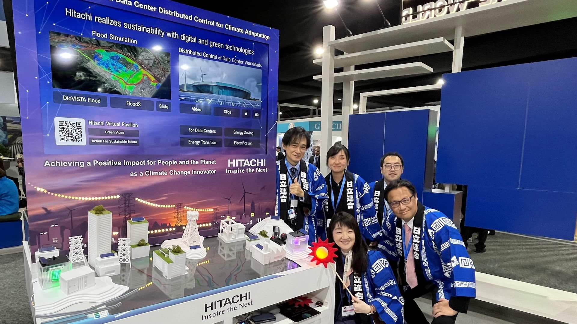 降雨から氾濫までの現象を一体的にシミュレーション。地図データから必要なモデルを自動的に構築、予測降雨データに基づき、今後の河川水位や浸水域、時間的推移を推定する。 DCの持続可能性、電力コスト削減/脱炭素化に貢献。東京電力パワーグリッド株式会社との共同実証において、異なる地域のデータセンターの計算負荷の分散制御に関する基礎技術を確立。 気候変動の影響により水災害の頻発化・激甚化への適応の重要性が増している。当展示では、災害リスクに強く、レジリエントな脱炭素社会の実現に貢献する、洪水シミュレーション技術及びデータセンター計算負荷分散制御技術を紹介。
