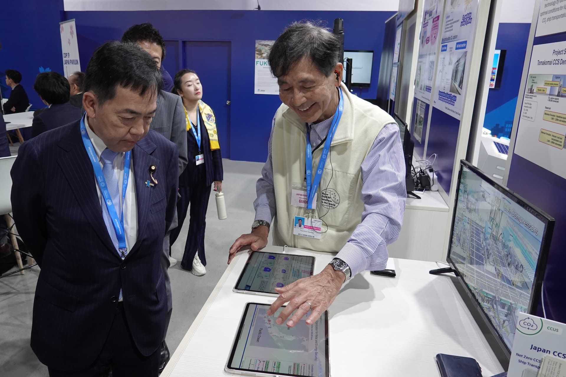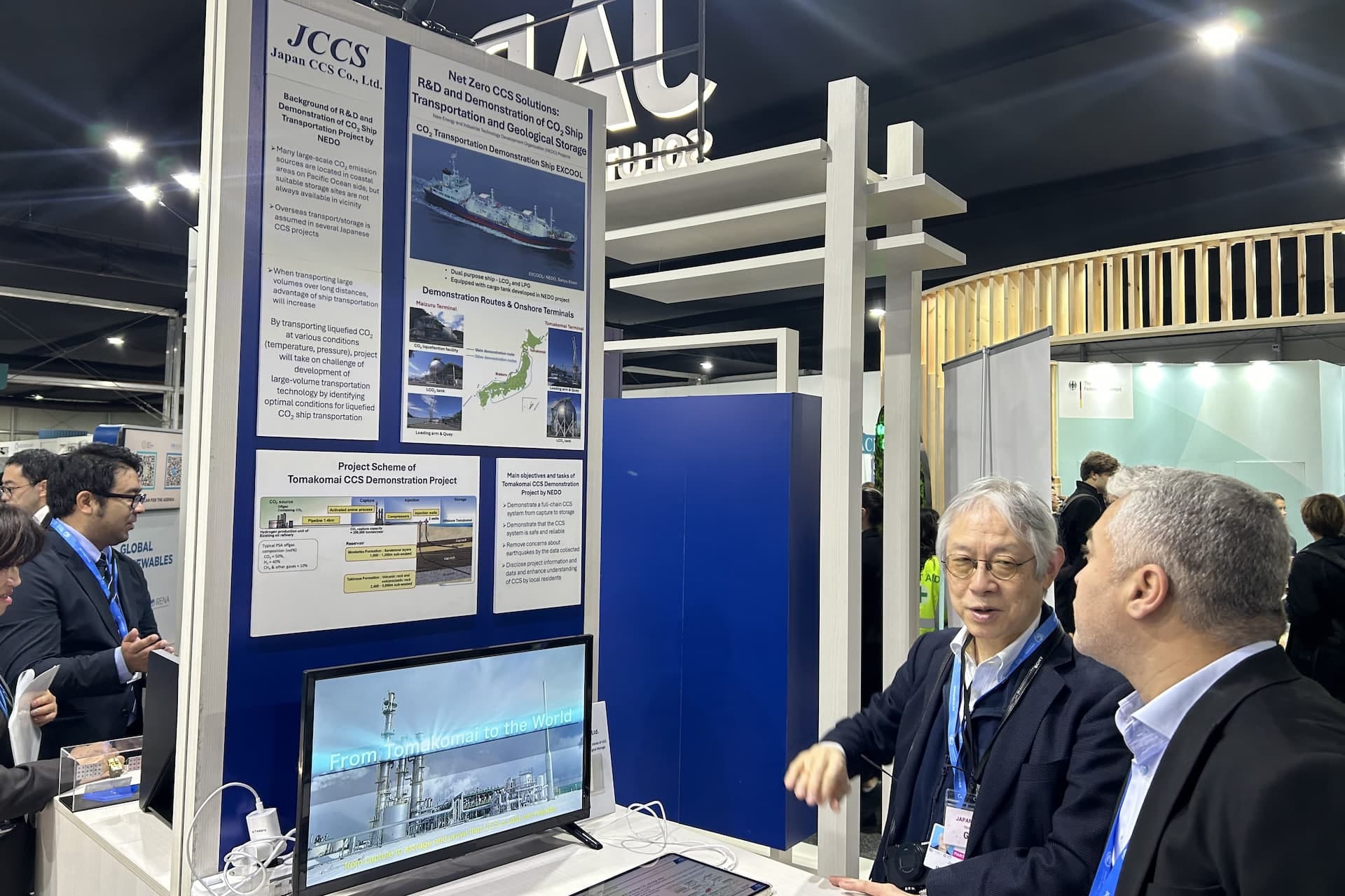 国内外の政府関係者、研究機関、ビジネス関係者、メディア等、400名近くのブース来訪者に日本のCCSのNEDO実証成果や、CO2船舶輸送事業の取組を紹介した。