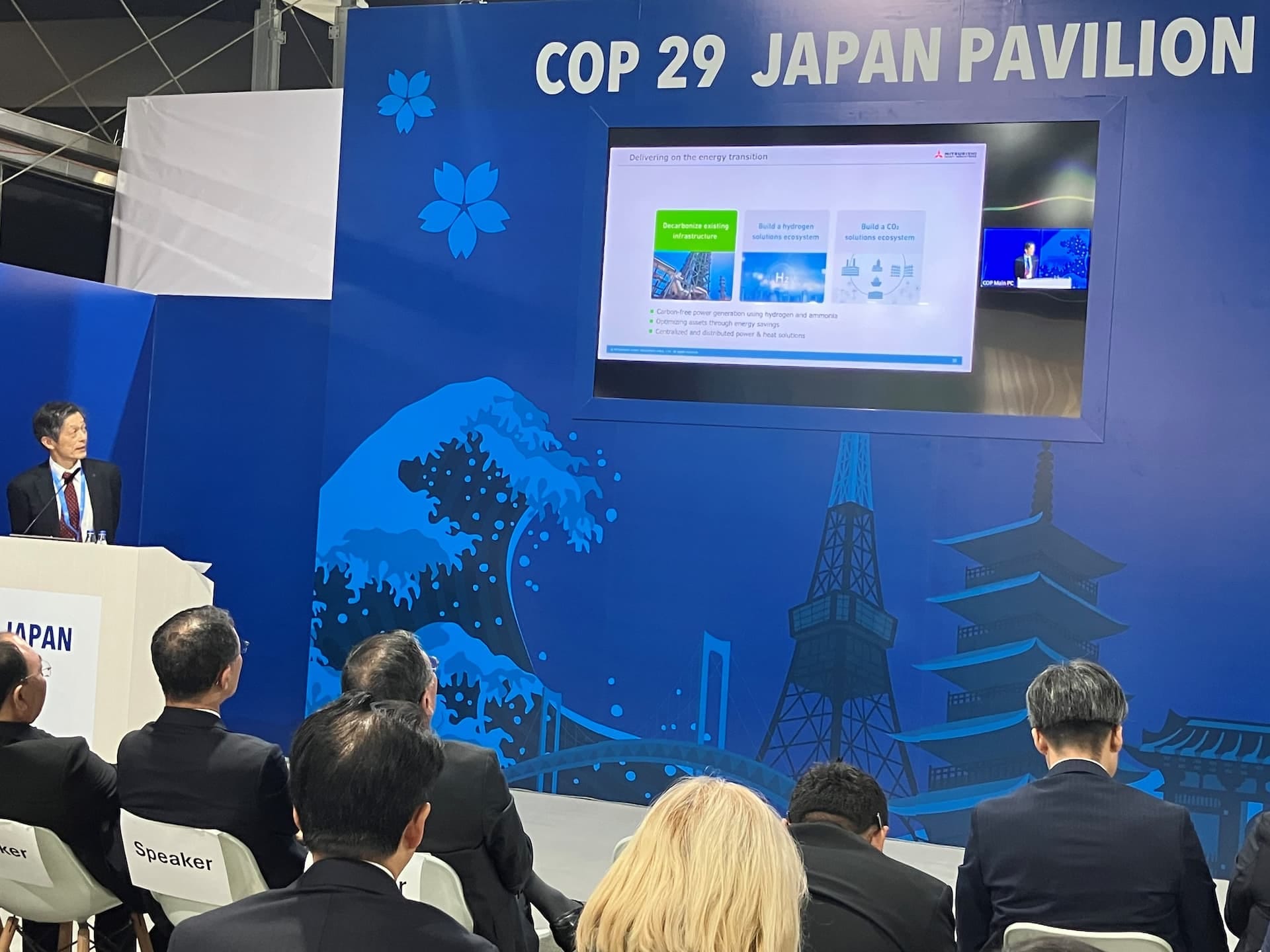 エネルギー・気候変動問題に取り組む各国政府要人・政策担当の方々との実地展示での意見交換等のみならず、3つのセミナーに登壇してのディスカッション等を通じて、三菱重工が取り組んでいるグリーントランスフォーメーションに貢献する脱炭素技術((1)革新的水素製造・発電技術、及び(2)先進的CCUSソリューション)を世界へ向けて紹介した。