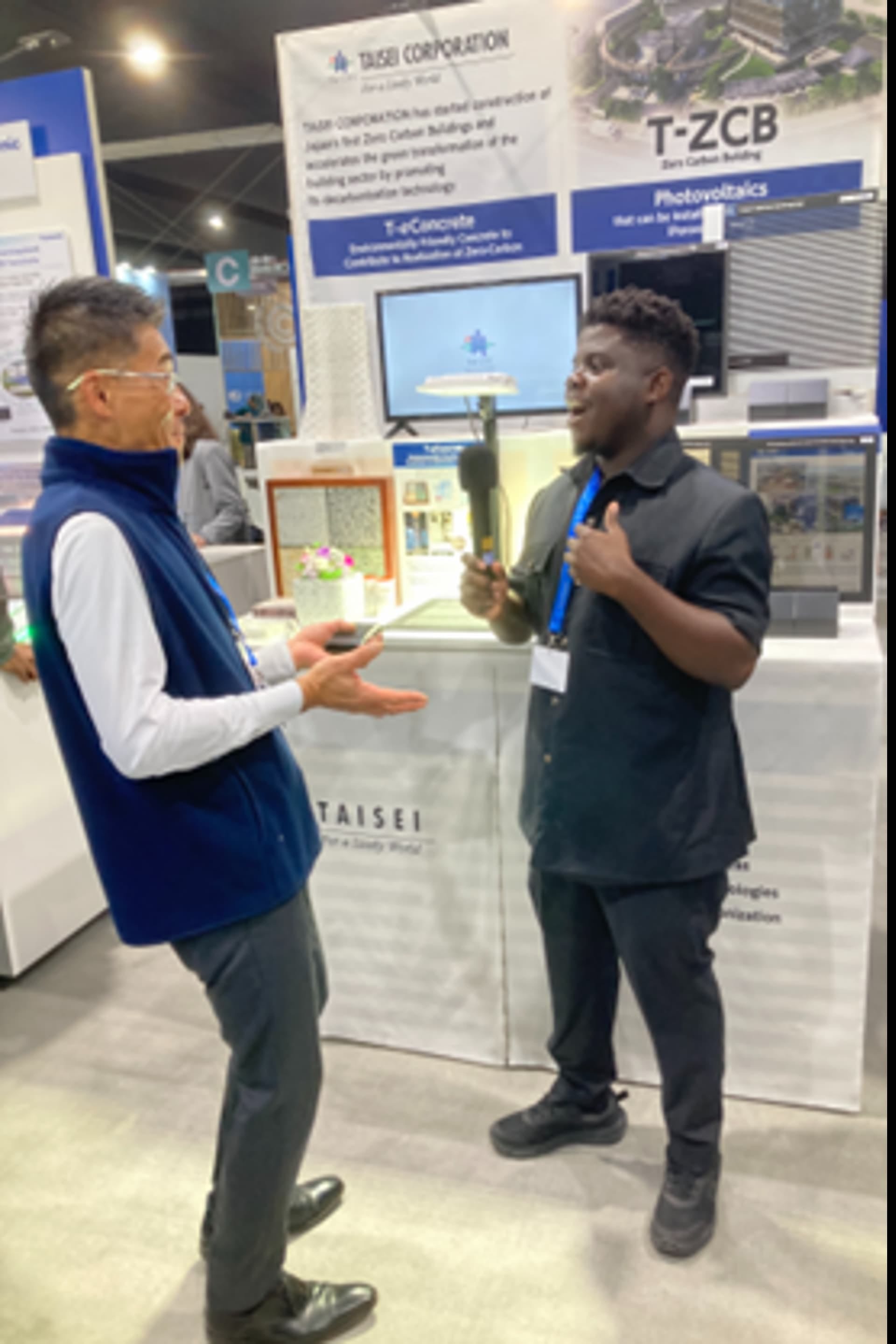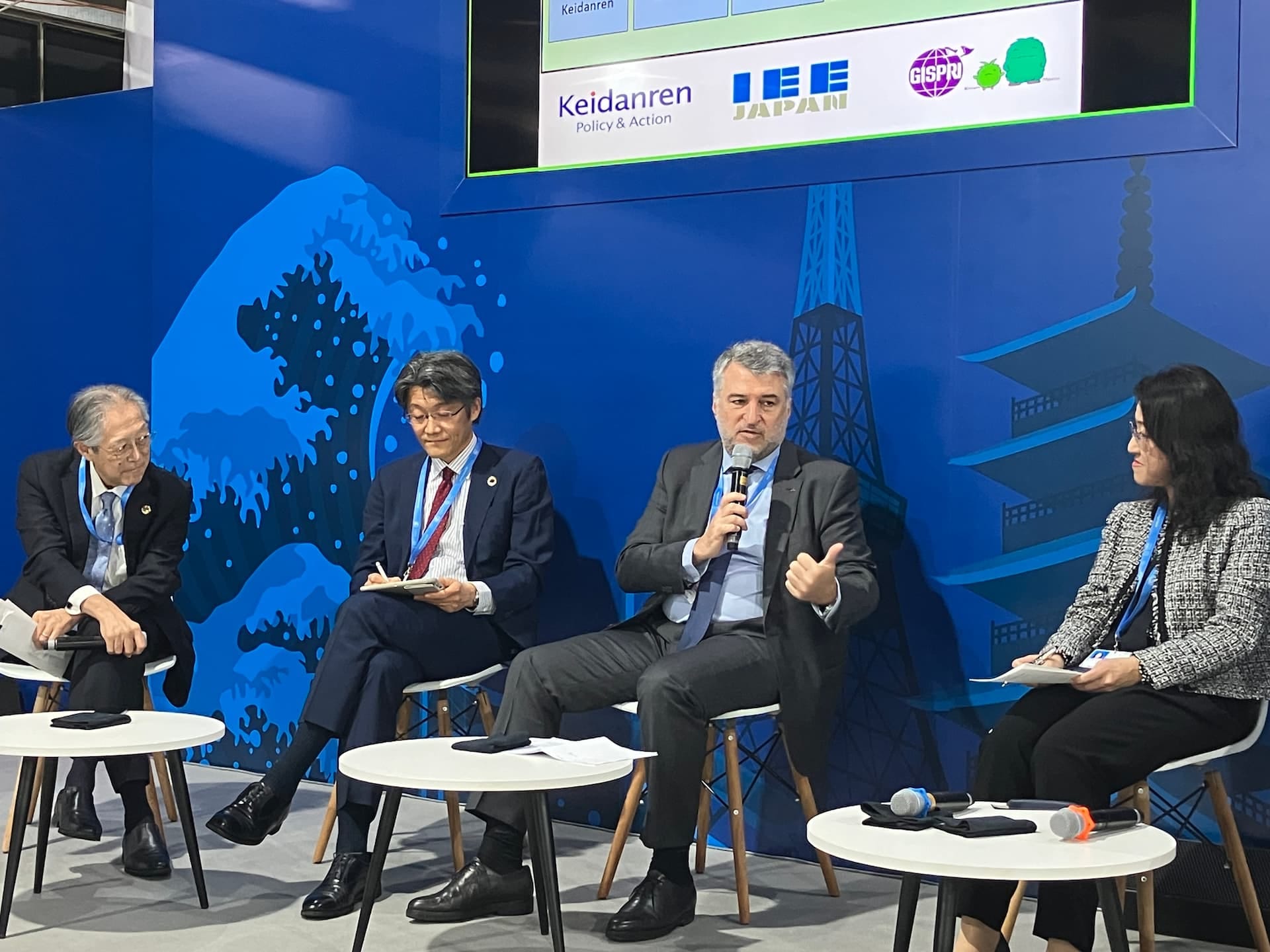 パナソニックホールディングス(株)の展示には各国の政府関係者、企業の方、学者、NGOなど多種多様な人々が足を止め、説明を聞いていただいた。実証実験の様子に興味を持って質問をされたり、水素や排熱利用に関して興味を示していただく場面が多かった。特に政府関係者からは自国でこういったソリューションを展開してほしいというお言葉を沢山頂くことができ、弊社のソリューションを広く知ってもらう機会となった。