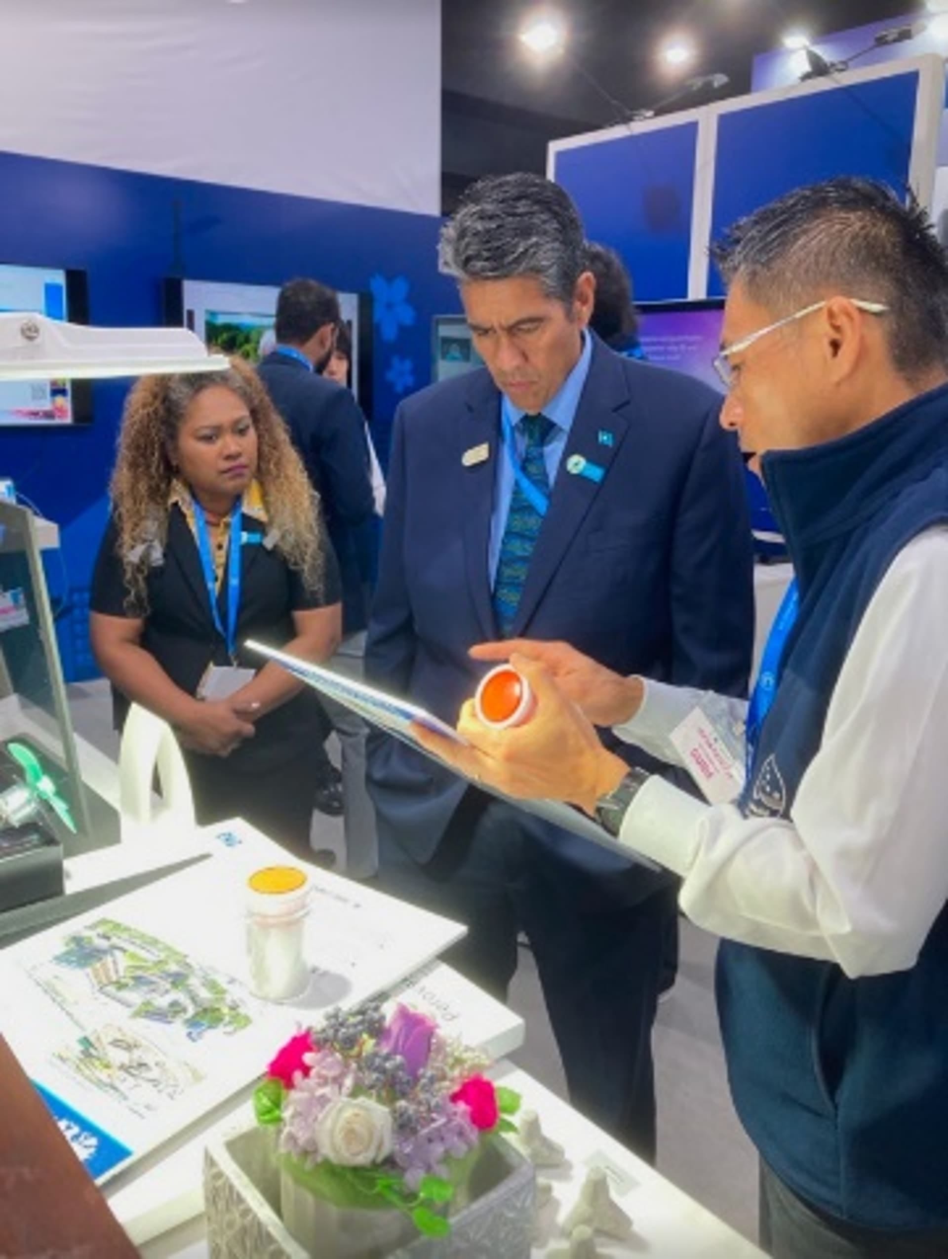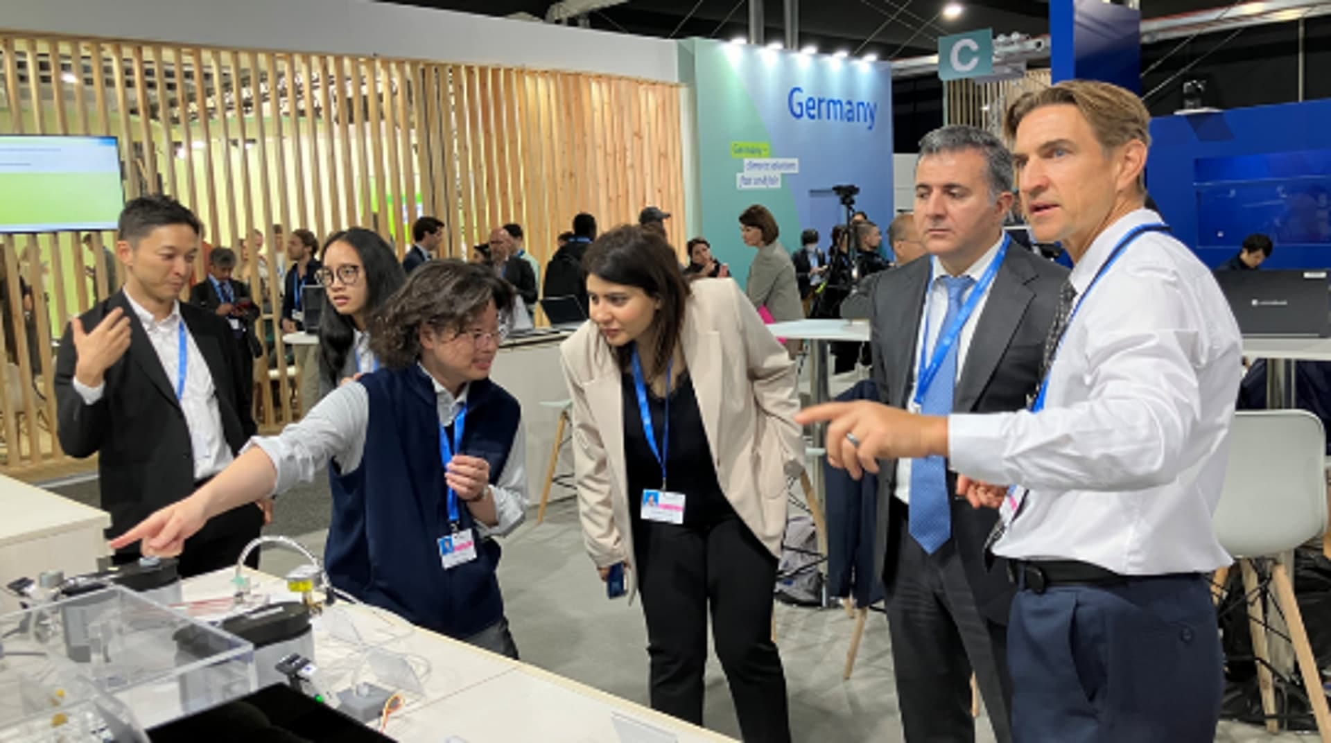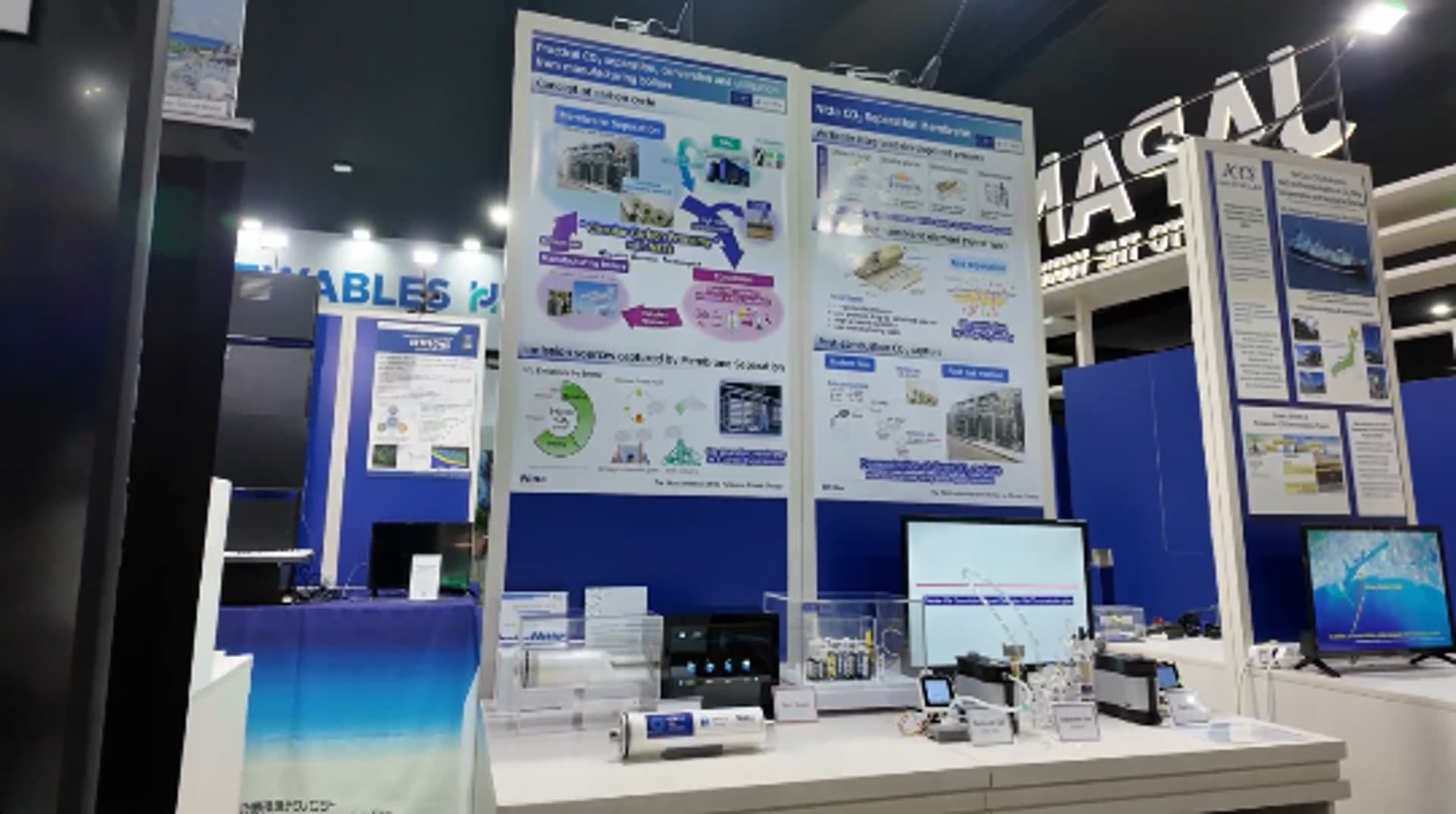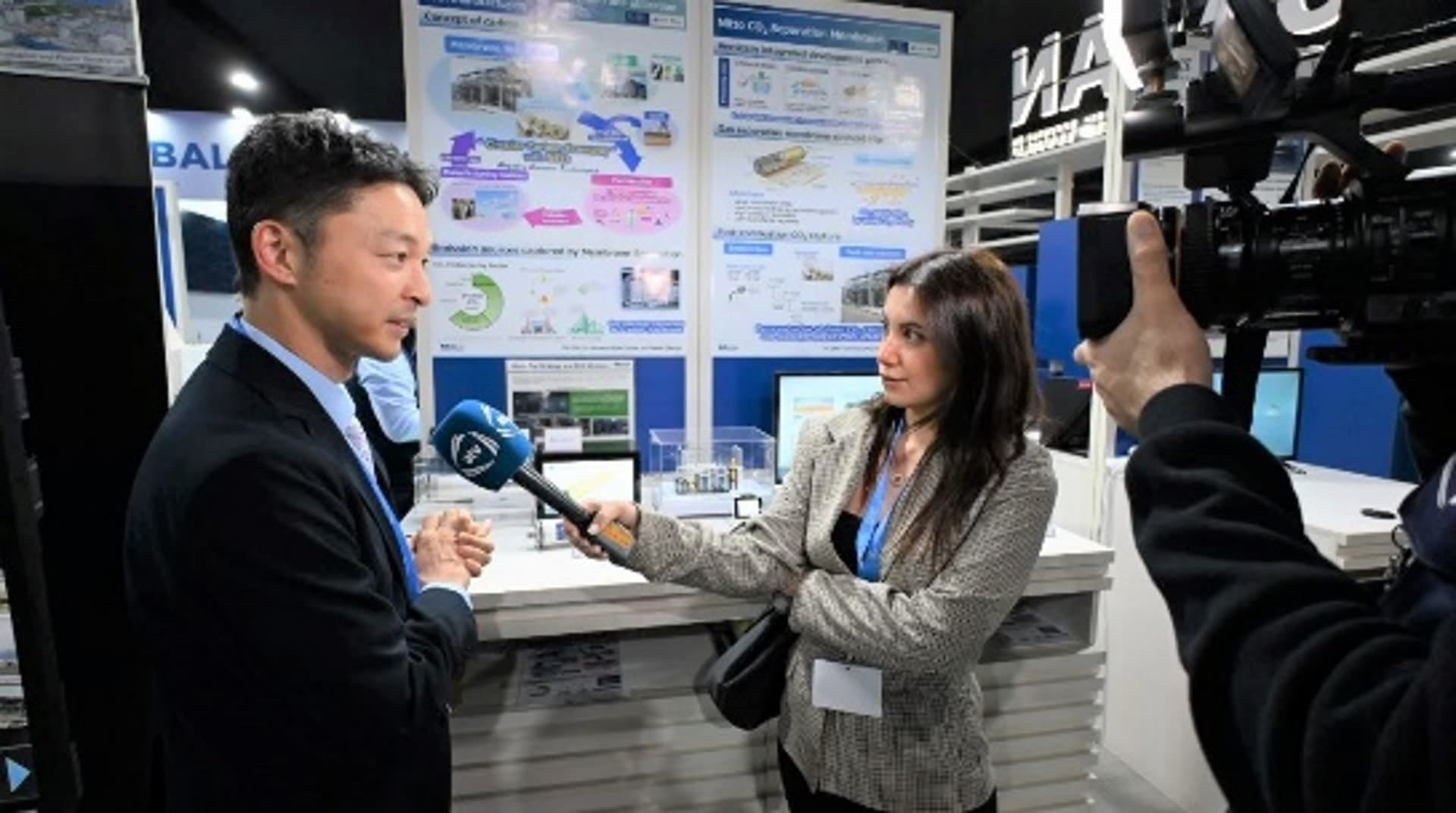 連日多くの気候変動分野におけるグローバルリーダーやメディアの方々がブースに立ち寄り、CO2分離回収・変換・利用技術に関心を持って頂けた。CO2分離膜シートやミニモジュールに触れて頂き、膜シートによるCO2濃縮デモンストレーションを見て頂く等、体感型の展示通じて、技術への理解を深めて頂けたはずである。情報交換や貴重なご意見を多数頂くことができた。
