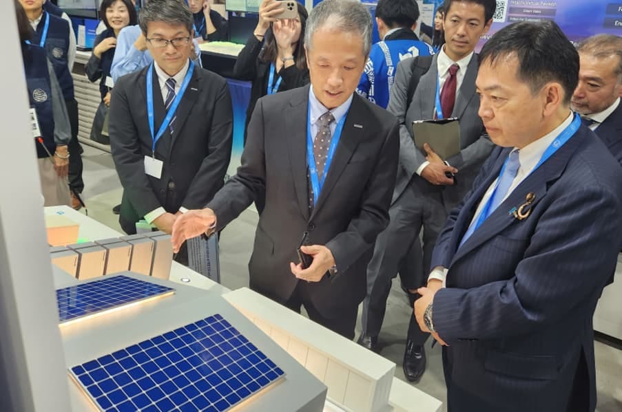 COP29では、英国・カーディフの電子レンジ工場にて従来の3電池連携システムに加えて熱エネルギーの有効利用をめざして給湯や暖房に導入することで総合的エネルギー効率向上を図っている様子を展示する。実施報告